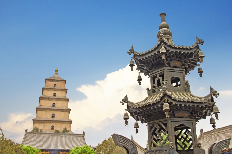 Пагодата на големата дива гуска се наоѓа во Ксиан, Кина. Изградена е во 652 г. во периодот на династијата Танг и првично била на пет катови, каде што се чувале будистички статуи и останки, собрани од монахот Суен Ѕан за време на неговите патувања. По наредба на императорката У, во 704 г. биле доизградени уште пет катови, три од кои биле силно оштетени за време на средновековните војни и се наложило да се отстранат. Денес пагодата е на седум катови и се издигнува на височина од 64 метри.
